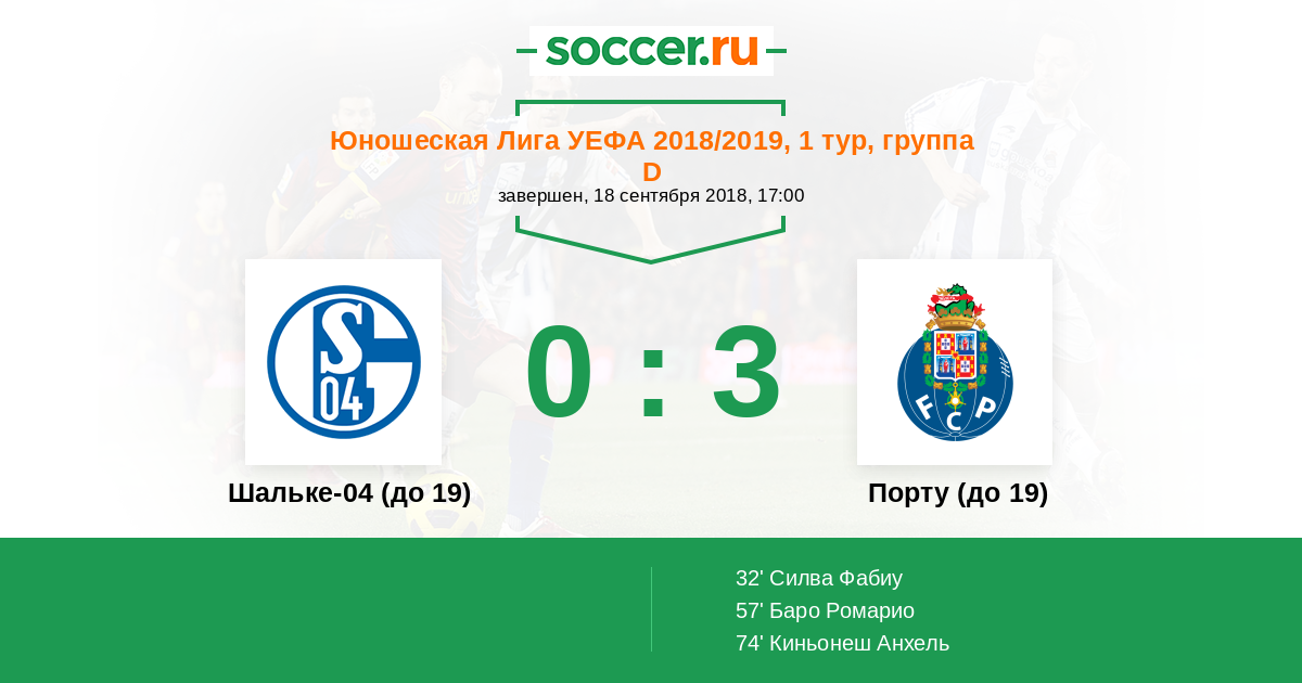 Протокол матча Шальке-04 (до 19) против Порту (до 19)