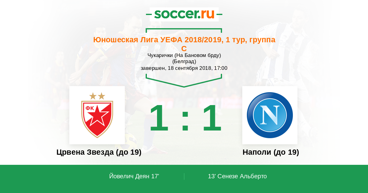 Протокол матча Црвена Звезда (до 19) против Наполи (до 19)