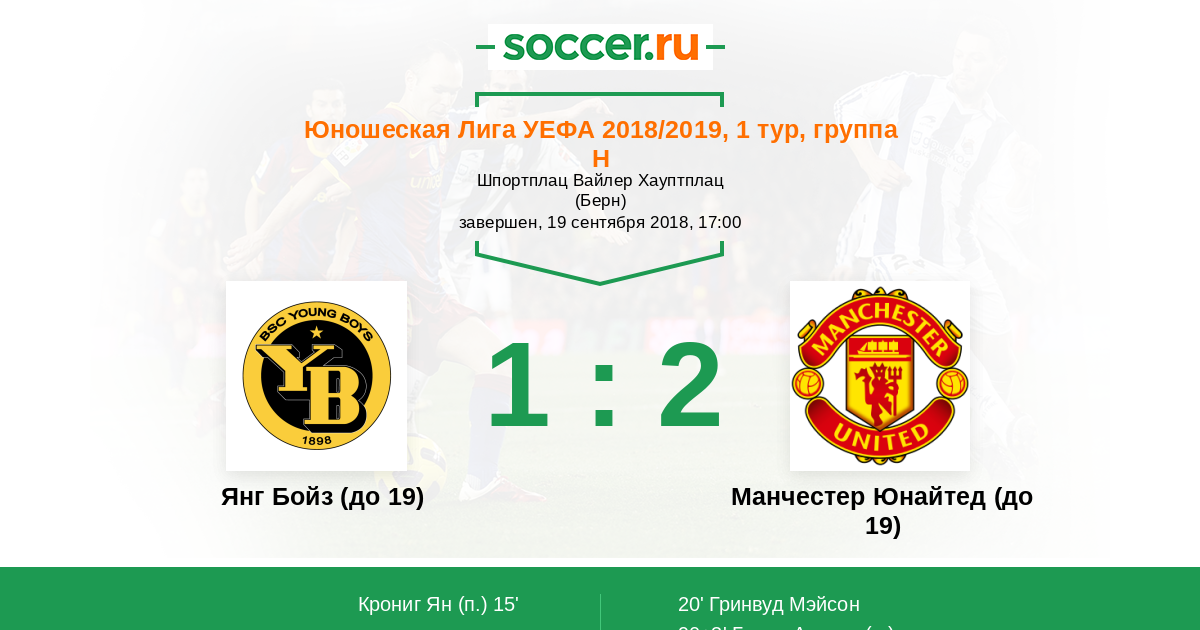 Протокол матча Янг Бойз (до 19) против Манчестер Юнайтед (до 19)