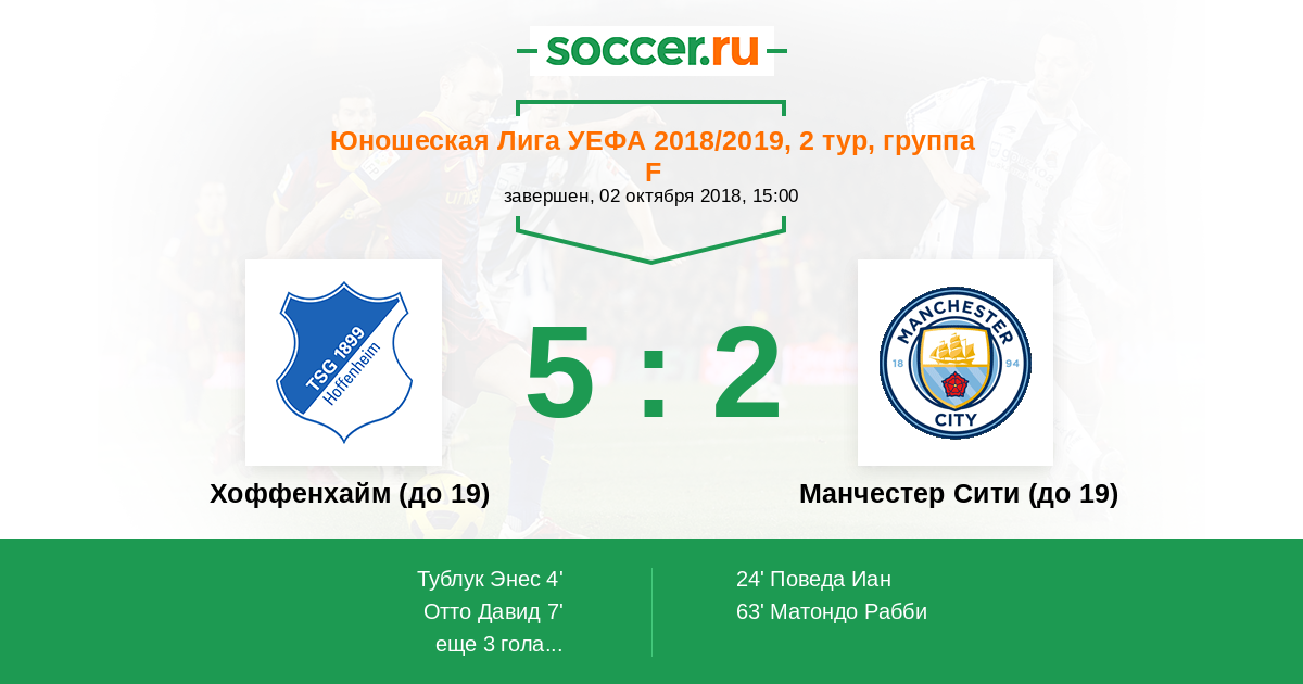 Протокол матча Хоффенхайм (до 19) против Манчестер Сити (до 19)