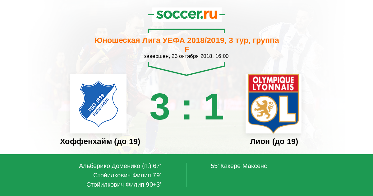 Протокол матча Хоффенхайм (до 19) против Лион (до 19)