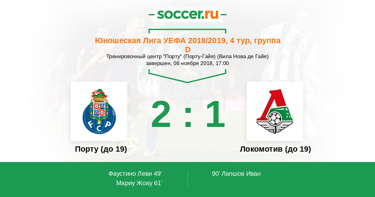 Протокол матча Порту (до 19) против Локомотив (до 19)