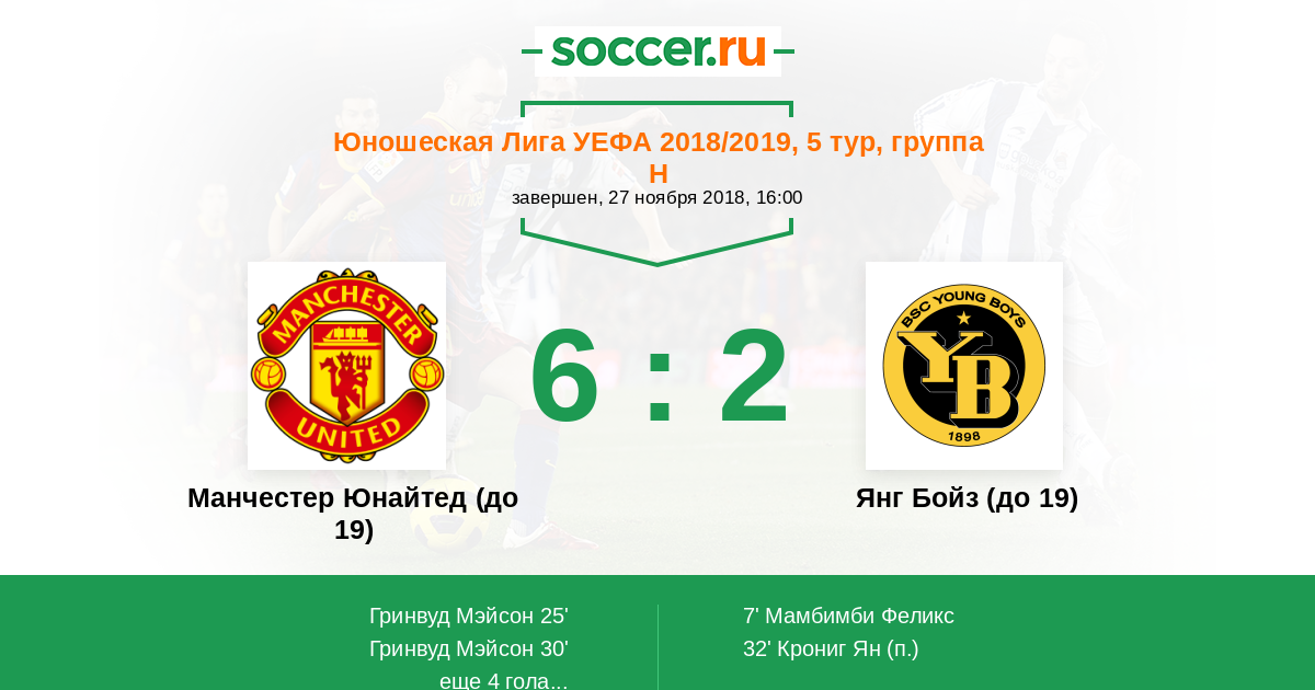 Протокол матча Манчестер Юнайтед (до 19) против Янг Бойз (до 19)