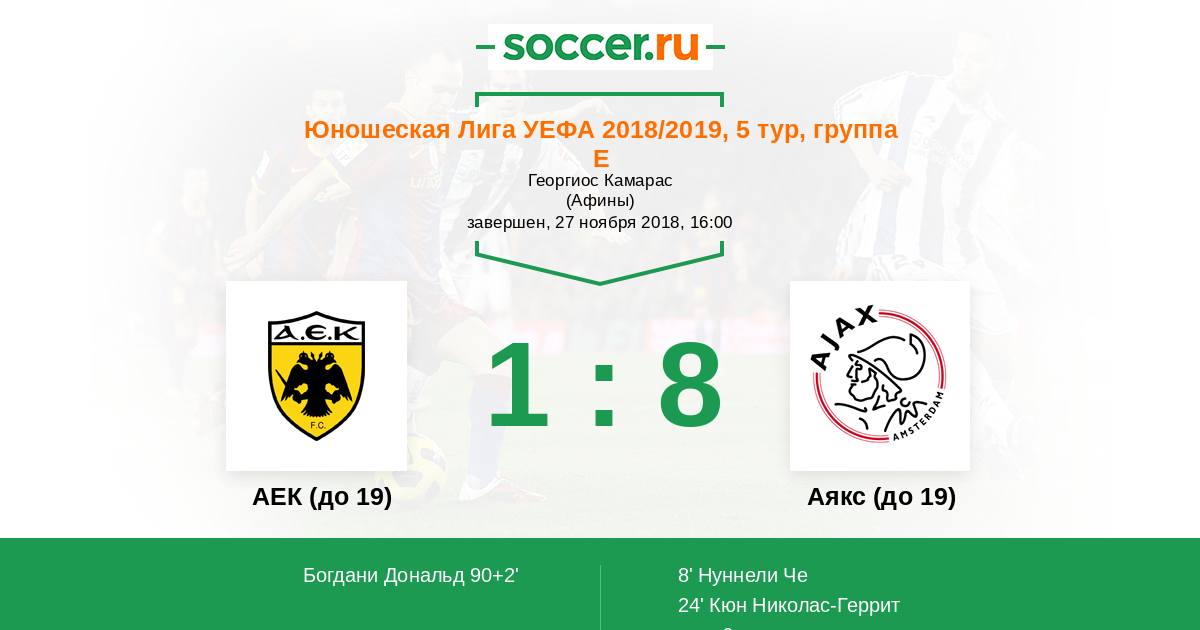 Протокол матча АЕК (до 19) против Аякс (до 19)