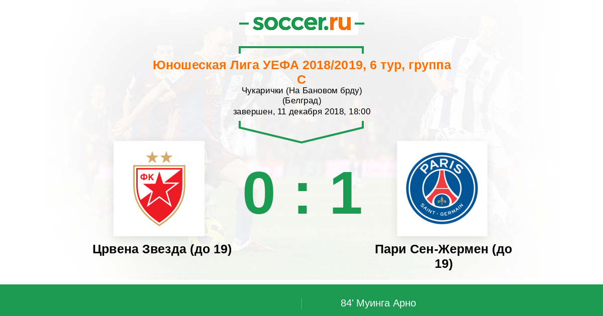 Протокол матча Црвена Звезда (до 19) против Пари Сен-Жермен (до 19)