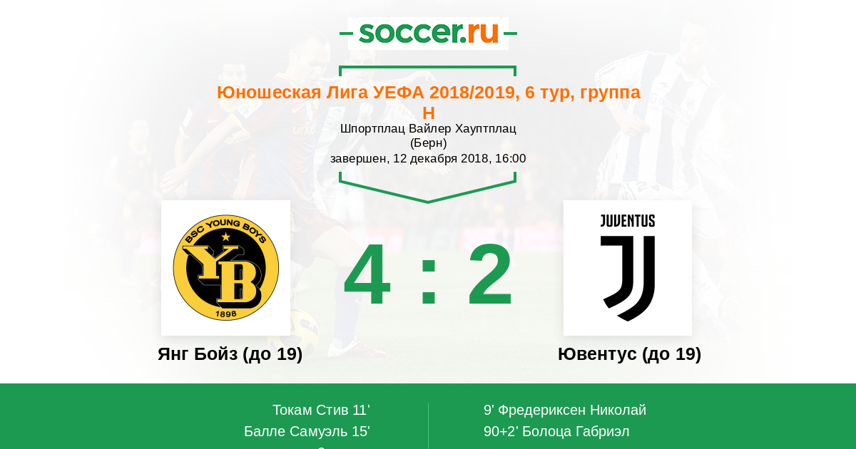 Протокол матча Янг Бойз (до 19) против Ювентус (до 19)