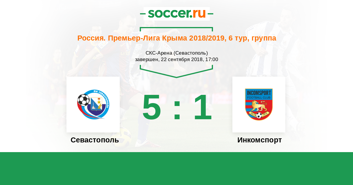 Россия. Премьер-Лига Крыма 04.09.2019 Океан Логотип футбольный клуб Океан (Керчь) 0:1 Логотип футбольный клуб Инкомспорт (Ялта) Инкомспорт