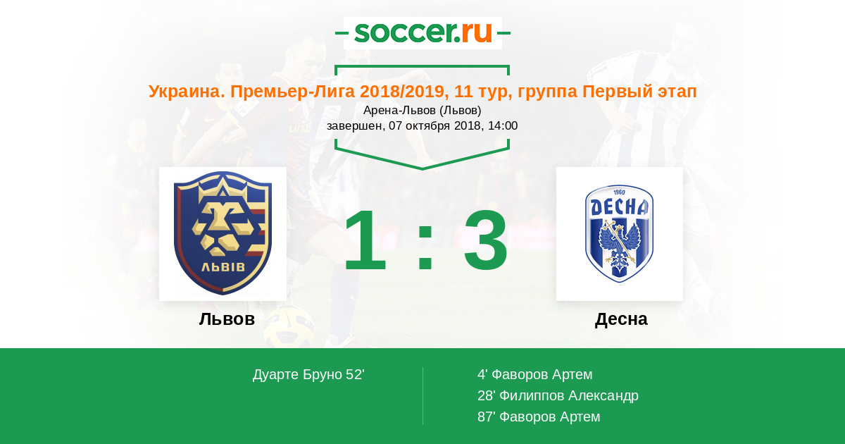 Протокол матча Львов против Десна