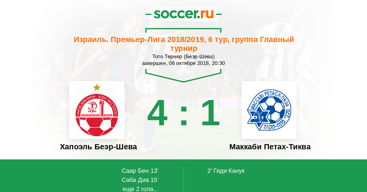 Протокол матча Хапоэль Беэр-Шева против Маккаби Петах-Тиква