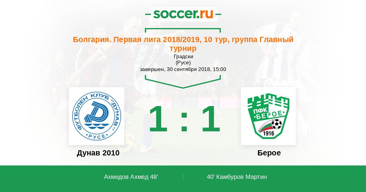 Протокол матча Дунав 2010 против Берое