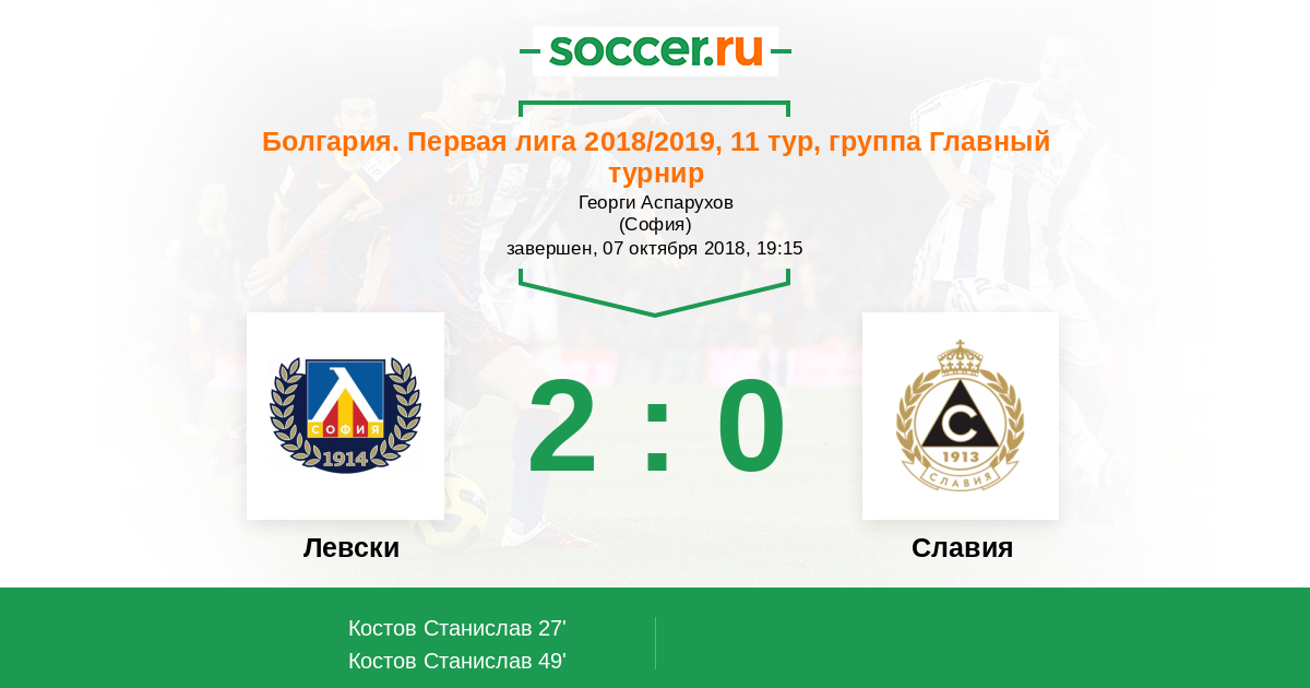 27' (1:0) Костов Станислав