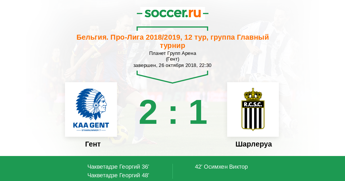 Протокол матча Гент против Шарлеруа