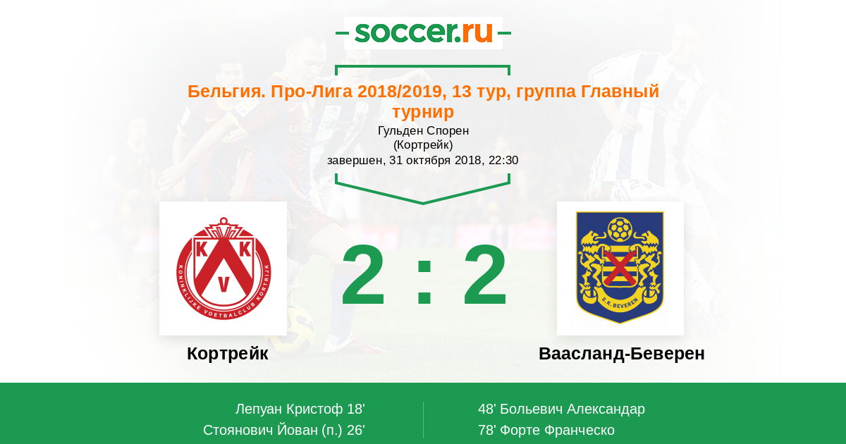 Протокол матча Кортрейк против Ваасланд-Беверен
