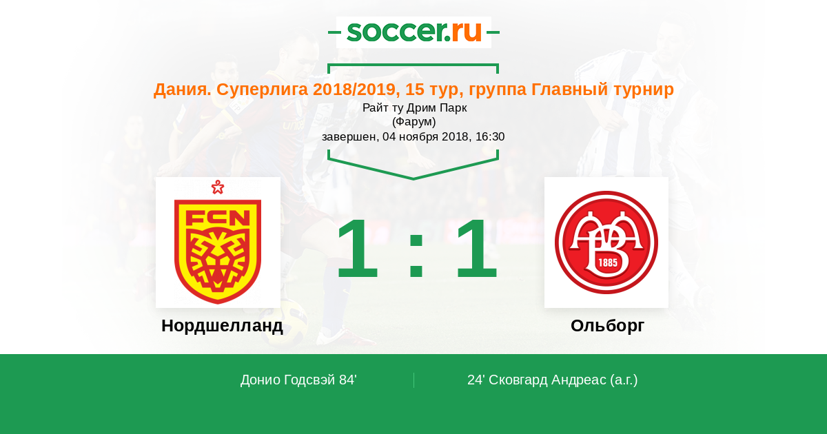 Протокол матча Нордшелланд против Ольборг