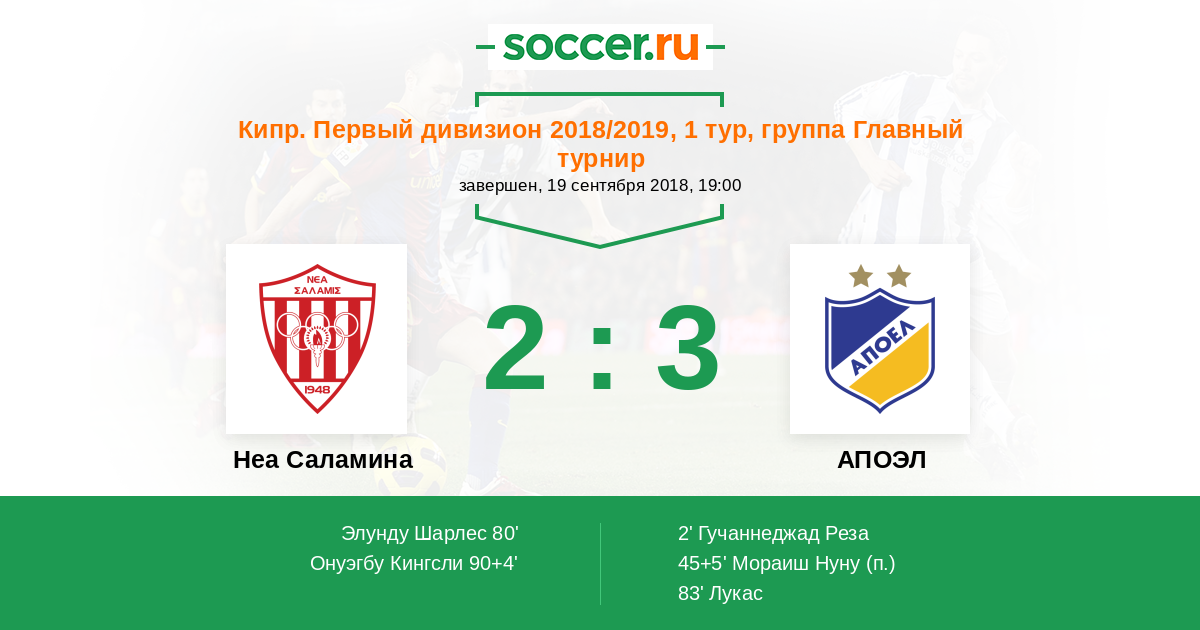 Протокол матча Неа Саламина против АПОЭЛ