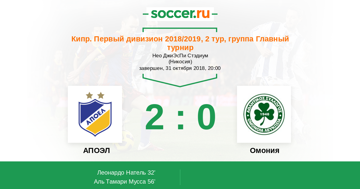 Протокол матча АПОЭЛ против Омония
