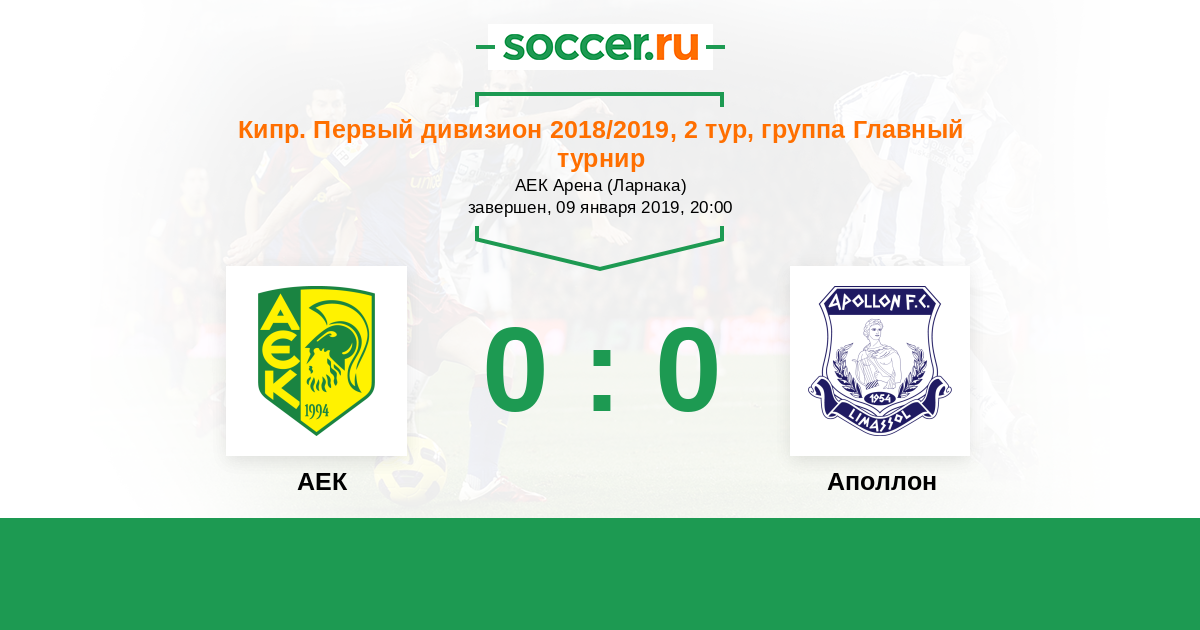 Протокол матча АЕК против Аполлон