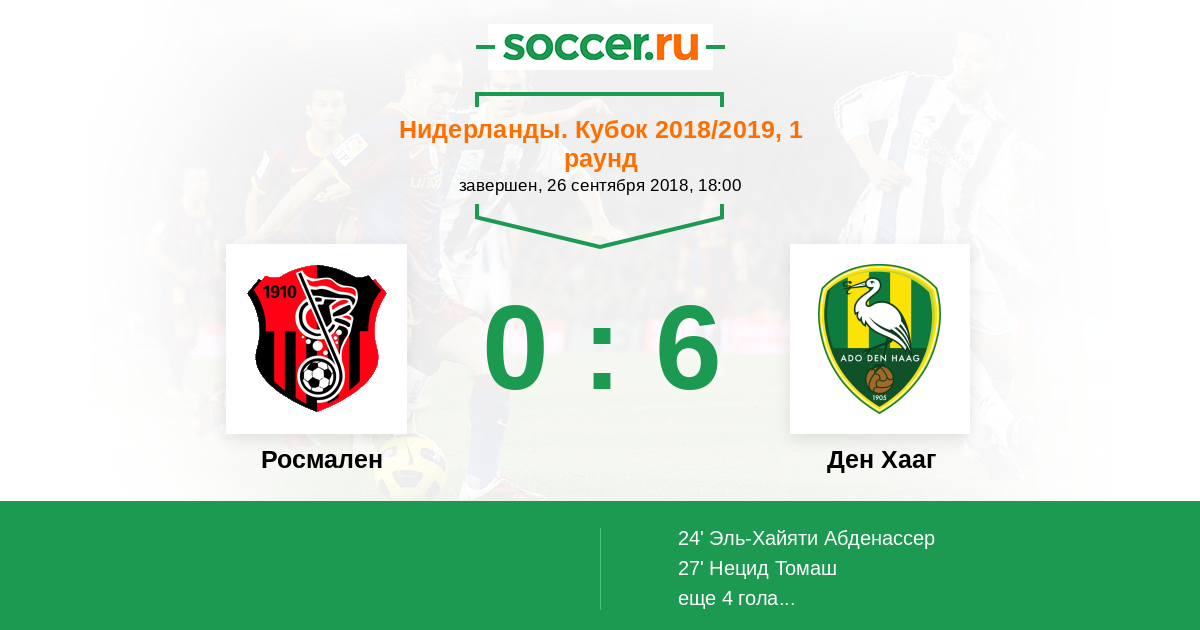 Протокол матча Росмален против Ден Хааг