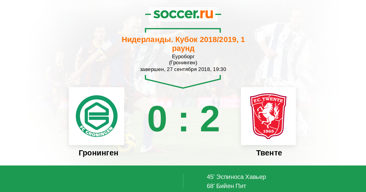 Протокол матча Гронинген против Твенте