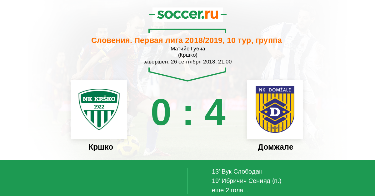 Протокол матча Кршко против Домжале