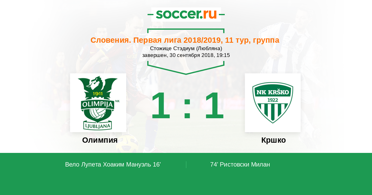 Протокол матча Олимпия против Кршко