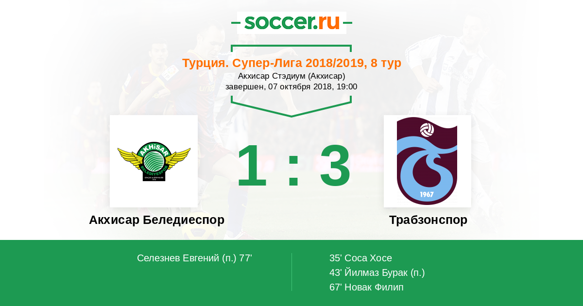 Протокол матча Акхисар Беледиеспор против Трабзонспор