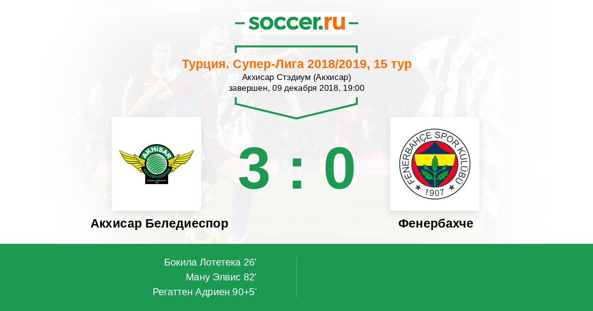 Протокол матча Акхисар Беледиеспор против Фенербахче