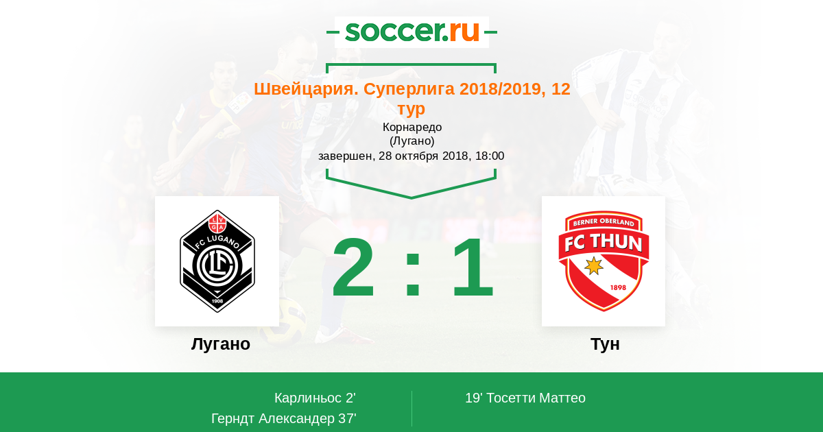 Протокол матча Лугано против Тун