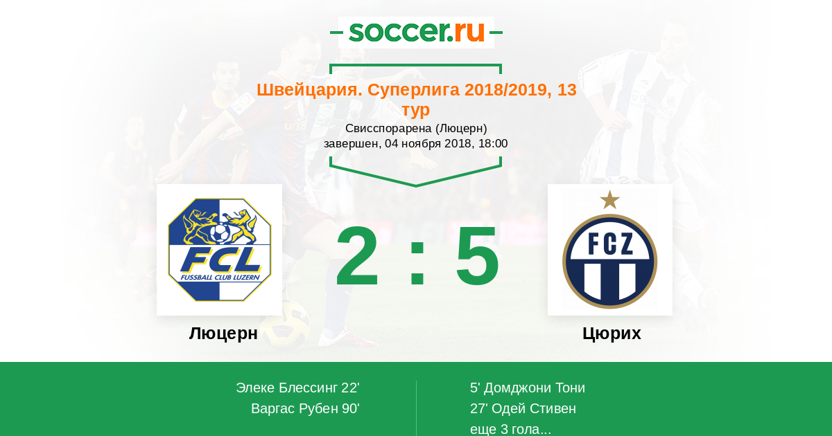 Протокол матча Люцерн против Цюрих