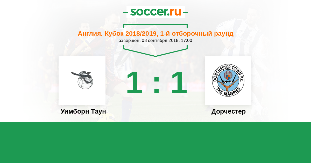Англия. Кубок 11.09.2018 Дорчестер Логотип футбольный клуб Дорчестер 3:0 Логотип футбольный клуб Уимборн Таун (Уимборн Минстер) Уимборн Таун