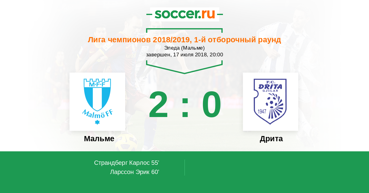 Протокол матча Мальме против Дрита