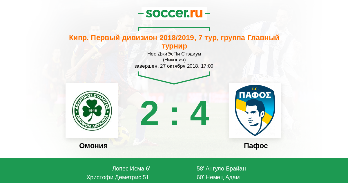 Протокол матча Омония против Пафос