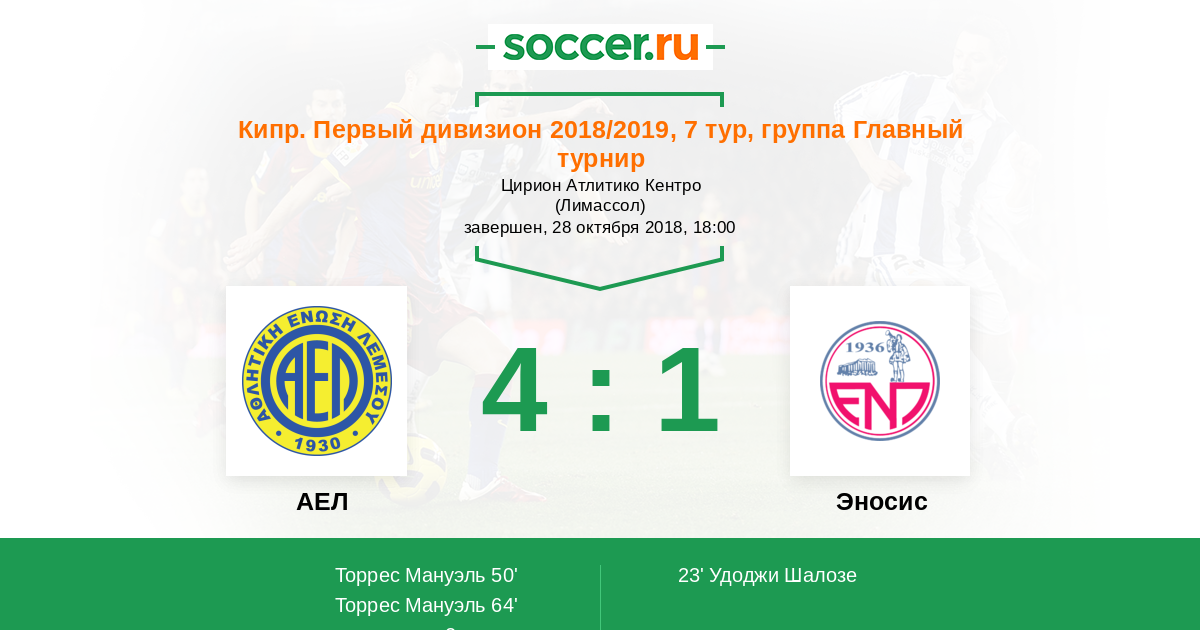 Протокол матча АЕЛ против Эносис