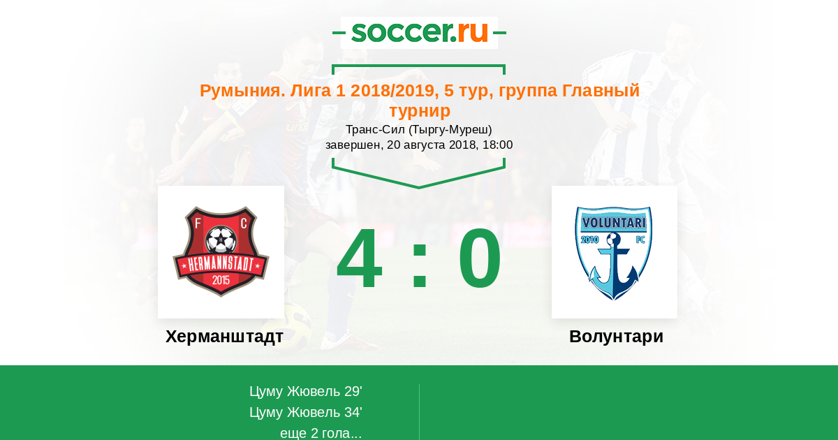 Протокол матча Херманштадт против Волунтари
