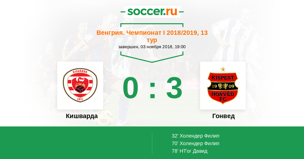 Протокол матча Кишварда против Гонвед