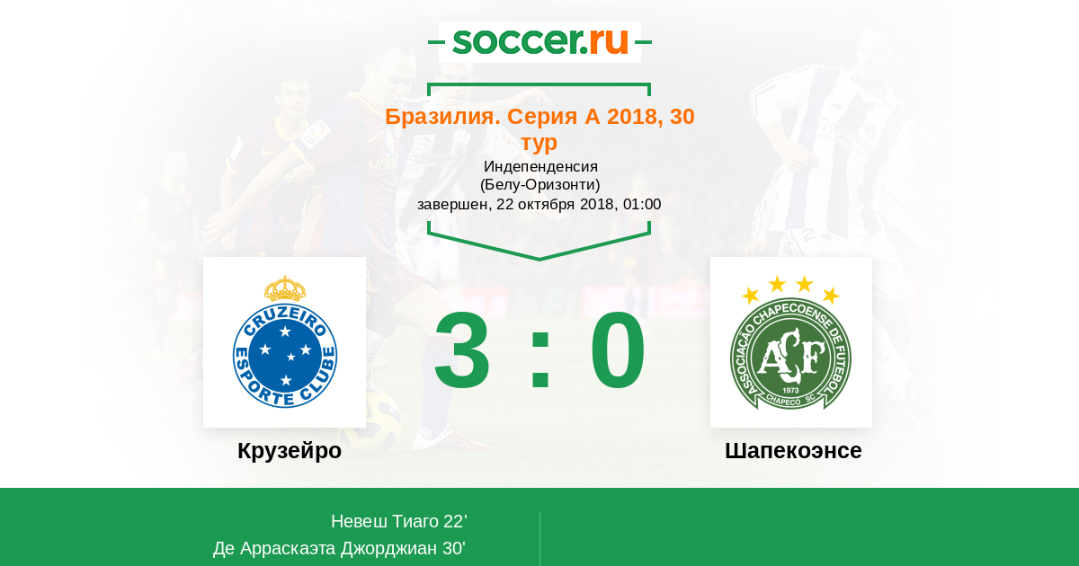 Протокол матча Крузейро против Шапекоэнсе