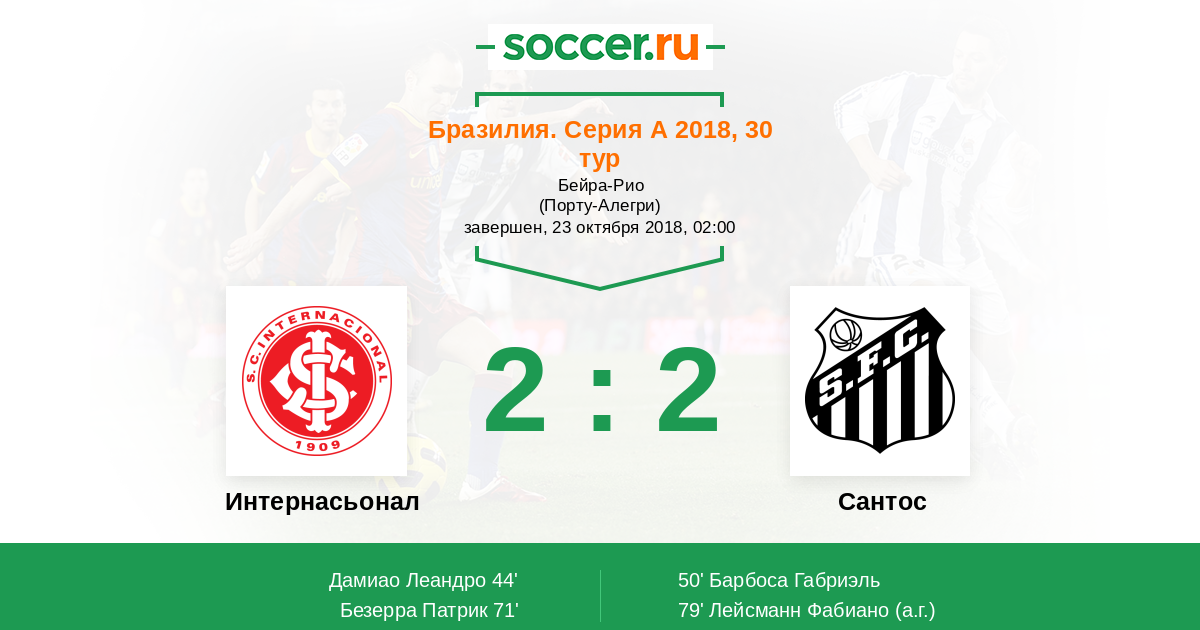 79' (2:2) Автогол Лейсманн Фабиано (18)