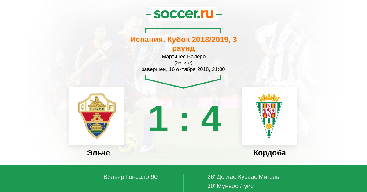 Протокол матча Эльче против Кордоба