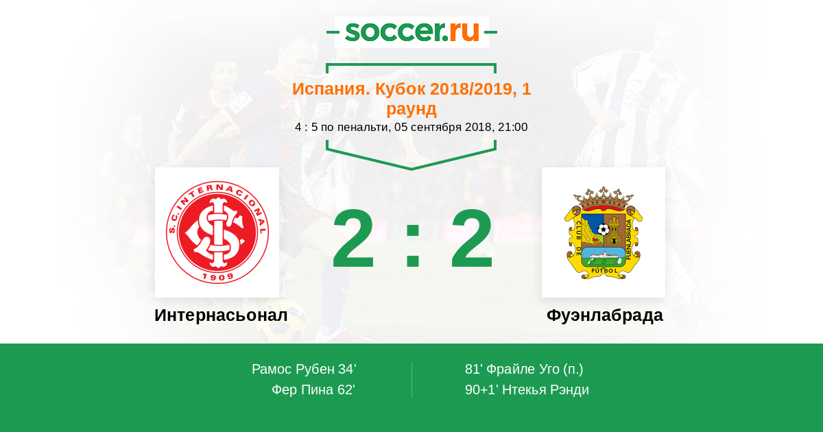 Протокол матча Интернасьонал против Фуэнлабрада