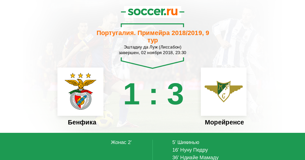 Протокол матча Бенфика против Морейренcе