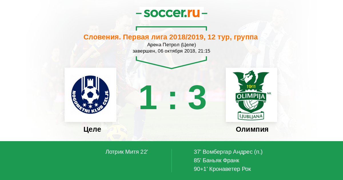Протокол матча Целе против Олимпия