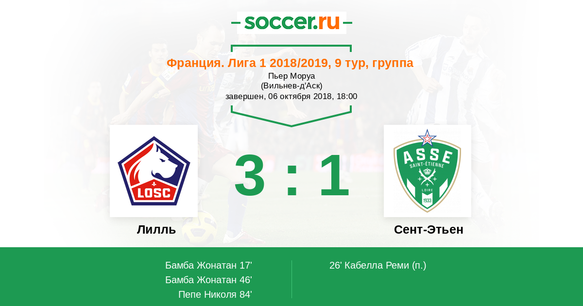 Протокол матча Лилль против Сент-Этьен