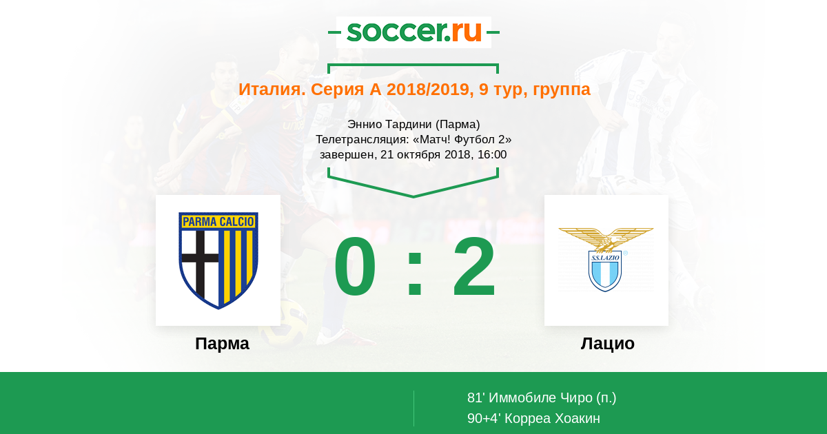 Протокол матча Парма против Лацио