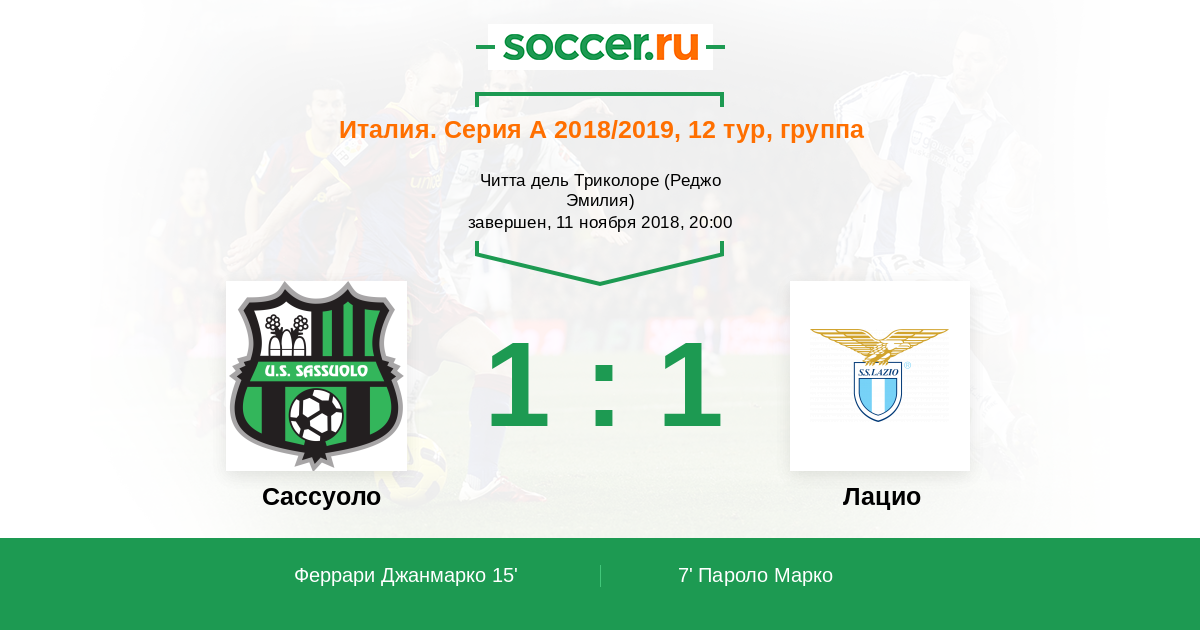 15' (1:1) Феррари Джанмарко (31) (Лирола Поль (21))