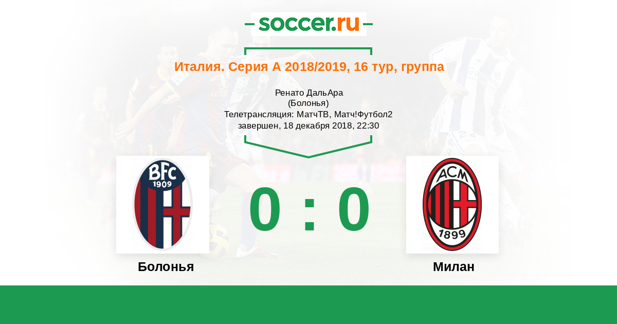 Протокол матча Болонья против Милан