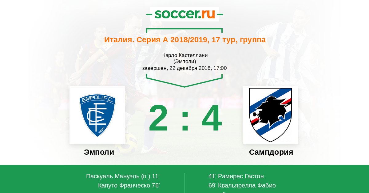 69' (1:2) Квальярелла Фабио (27) (Мурру Никола (29))