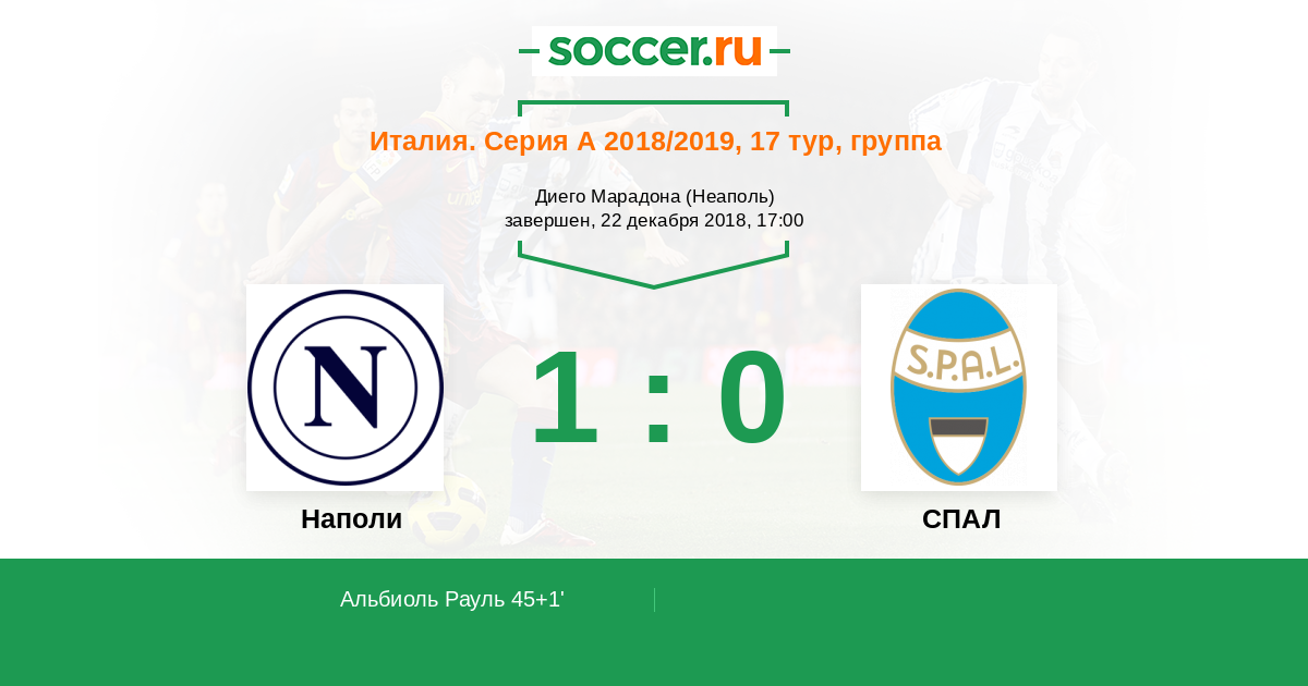 Протокол матча Наполи против СПАЛ