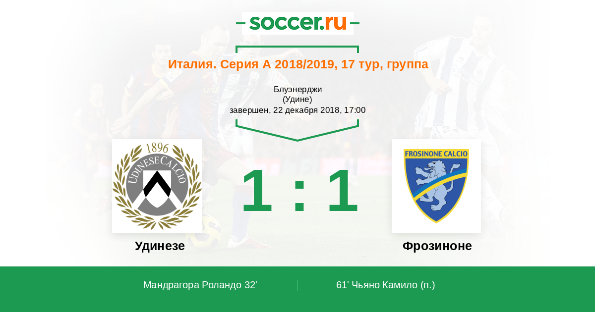 Протокол матча Удинезе против Фрозиноне