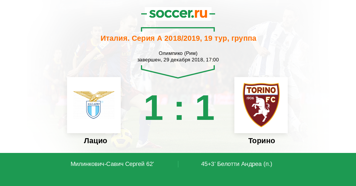 Протокол матча Лацио против Торино