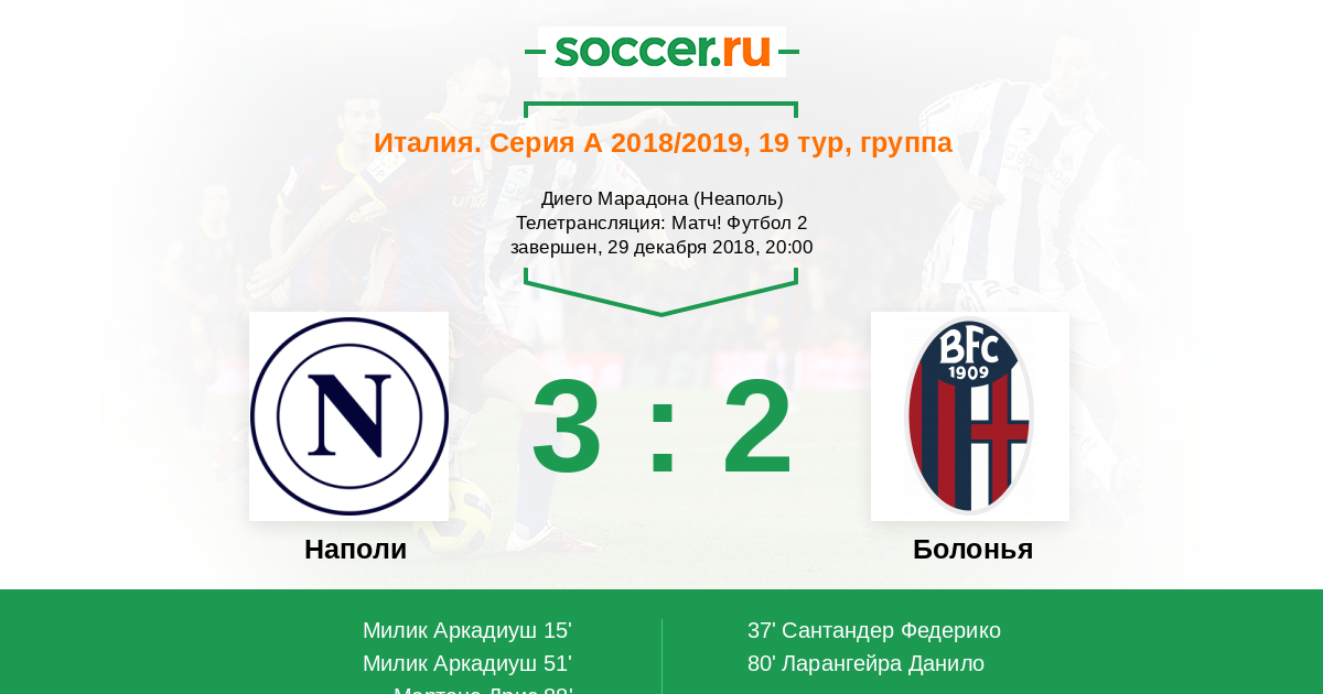 Протокол матча Наполи против Болонья
